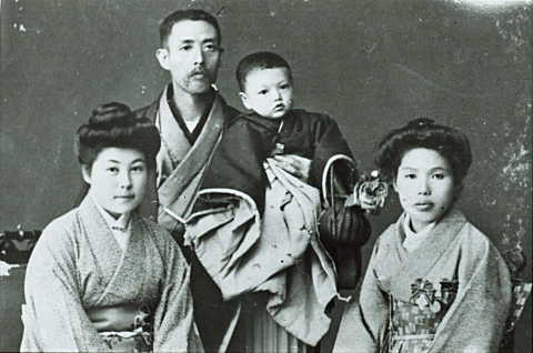 | 父・茂に抱かれた赤ちゃんが森敦、右は母・静野。 |