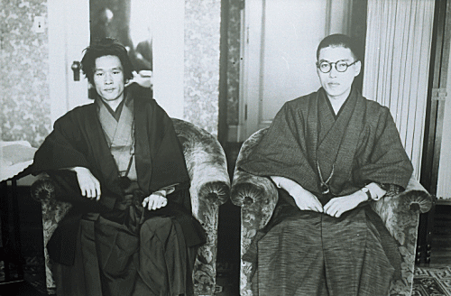 | 作家横光利一氏(左)と森敦(昭和9年・22歳)。 |