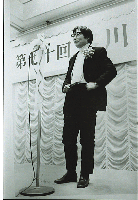 | 第70回芥川賞の授賞式で挨拶する森敦(昭和49年・62歳) |