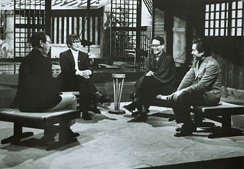 | 東京12チャンネル「人に歴史あり」の一場面。 メーンゲストの森敦(左より二人目)と檀一雄、三好徹(右の二人)の各氏。 |