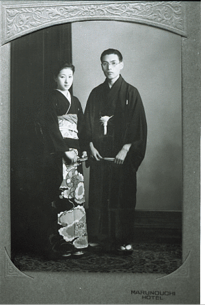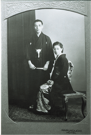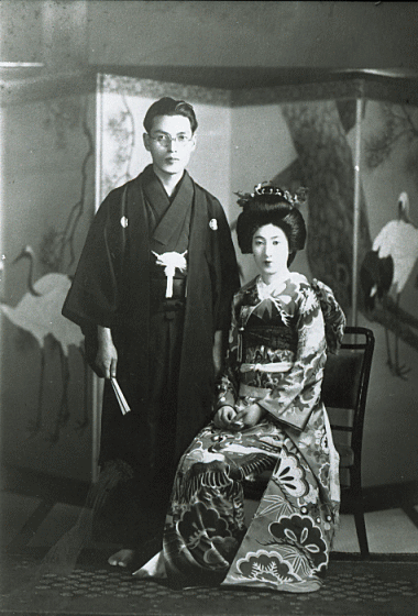 | 東京の雅叙園で結婚した花婿、花嫁姿の、森敦と妻・暘。 |