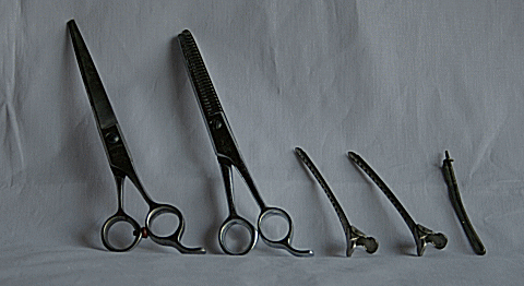 | 左端はカット用鋏、その右がすき用鋏で、その他は髪の毛が垂れないようにおさえるもの。カット、白髪染め、洗髪の順で、二時間半はかかった。「染めてほしい」と言い出すこともあったが、不潔の限界に達すると「髪の手入れをしましょう」と言うのだが、目的は風呂に入れることであった。床屋談義はここに書ききれないが、面白い話、不思議な話を少し記しておく。 その一。ねむの木学園に行ったとき、子供たちが親しみをこめて「森先生の頭は、ぼくたちと同じ、虎刈りだぁ」と、誇らしげに言った。まり子さんが並んだ子供たちの髪を切るのだそうで、鋏の跡もギクシャクした、おかっぱの髪形がそっくりだ。 その二。勤め人にとって土日は一週間分の洗濯と掃除、次週用の料理の下ごしらえなどで忙しいうえに疲労困憊しているので眠い。髪の手入れは臨時の仕事だからつらい。鋏を手にして居眠りはできないので眠気に襲われると独り言を口にした。「ああ、床屋代を百万いただきたいわ」。次のときは、「今日のお代はいくらだね」と訊かれるので、「おまけして、二百万!」と応える。 その三。突然、ぽつりと言った。「きみの人生の中で、ぼくが、いちばん誠実だと思うだろう」。「誠実とは?」と訊こうとしたが、声が出なかった。 その四。午後三時ごろ呼び鈴が鳴った。ちょうど、ブラシで液状の白髪染めを頭髪に塗り終わったところだ。約束をしないで訪問する人もいる。応接室で待つ客に会うために、新しい手拭いを三折りにして鉢巻状に頭に巻きつけた。紅茶を飲みながら談論風発。白髪染めの液が染み出してきて、波紋のように手拭いを染め出した。手拭いで髪を隠していると信じているのが可笑しく、唇を噛んで笑いを飲み込む。客人も目のやり場に困り、早々に帰って行った。 その五。つらかったので高額な散髪代で表現した。前髪を短くして散髪を間遠にするため、居眠りしているうちに額の中ほどまで切った。鏡を見て憮然として怒った表情だ。以来、眠っていても前髪に鋏を入れるそのとき、目をパッチリとあけて言った。「短く切っちゃ駄目だよ」と。 |