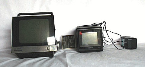 | 左のやや大きめのソニー製テレビは、調布市布田のやよい荘で愛用し、二台あった。どこででも見たいというので、右の最小のテレビを求めた。テレビが大好きで、ニュースや歌番組や特集ものを好み、大事件の報道は何時間でも見た。晩酌しながら教育テレビの数学T・U、幾何などを見て、問題が出ると瞬時に答を出して楽しみ、得意がった。 ソニー製品信奉者で、放浪中にソニーの株で生活ができからだという。日立のテレビを設置したら、毎晩、色が悪いと言われ続け、聞き流すにも限界がきたため身内に渡し、新たにソニーのテレビを設置したが、すぐ故障。ベーターのビデオデッキの登場時に設置したがすぐ故障、修理してもすぐ故障。テレビやビデオデッキの度々の故障にもかかわらず、ソニー製品を愛用し続けた。 |
