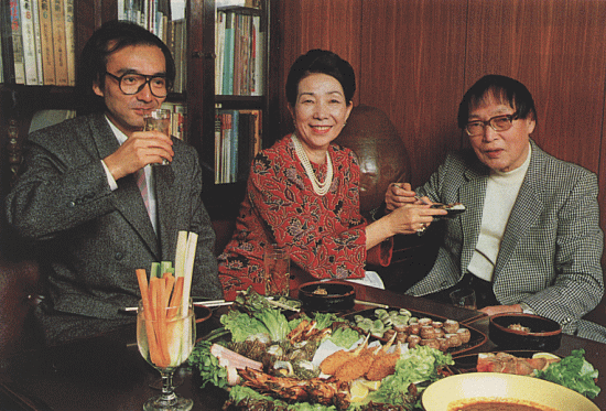 | 森敦先生とお目ににかかったのは九年前、岩波ホールが「月山」(村野鐵太郎監督)を上映したときだった。新井満さんとも、そのとき以来のおつきあいである。満さんは、森先生に触発されて組曲「月山」を作曲し、やがて小説も書き始めた。 森先生は真の教育者だと思う。私も先生に励まされて文章が書けるようになり、何冊かの本を出すことができた。 今夜は、先生と満さんが昨年の野間文芸賞と新人賞をそろって受賞された、そのお祝いの会である。この師弟のダブル受賞が、私にはわが事のようにうれしいのだが、お二人は、満二十周年を迎えた岩波ホールのために乾杯、と言ってくださる。 「憂陀」は私の好きなお店だ。モーツァルトのレコードの収集家として知られる金森さんご夫婦は、映画大好き人間でもあって、私やホールのスタッフが行くと、さりげなく映画音楽が流れてくる。 仕事場からは近いし、食事が済んだ人も、お腹がすいている人も共に満足のできる、私にはなくてはならないお店である。 |